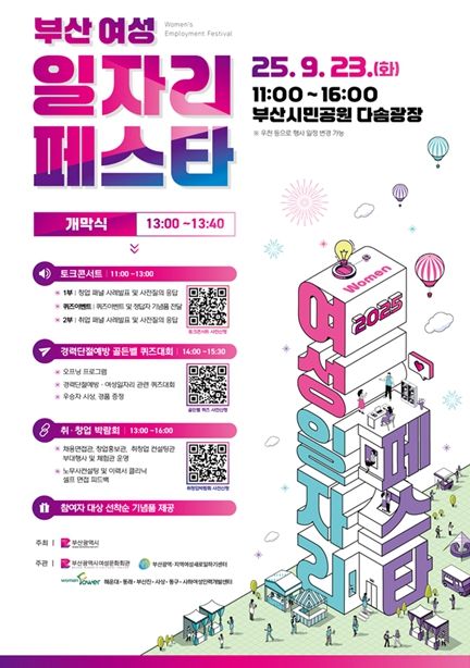[경남도민뉴스=신석주 기자] 부산시는 오는 9월 23일 오전 11시부터 오후 4시까지 부산시민공원 다솜마당에서 '2025 부산 여성 일자리 페스타'를 개최한다고 밝혔다.