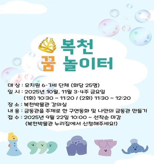 참가 신청은 9월 22일 오전 10시부터 복천박물관 누리집을 통해 할 수 있으며, 선착순으로 마감된다.