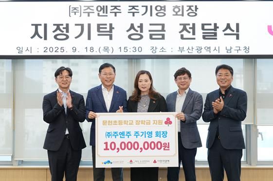 [경남도민뉴스=신석주 기자] 지난 18일 부산 아너소사이어티 회원인 ㈜주엔주 주기영 회장은 모교인 부산 남구 문현초등학교의 가정형편이 어려운 학생 20명에게 성금 총 1,000만 원을 전달했다.