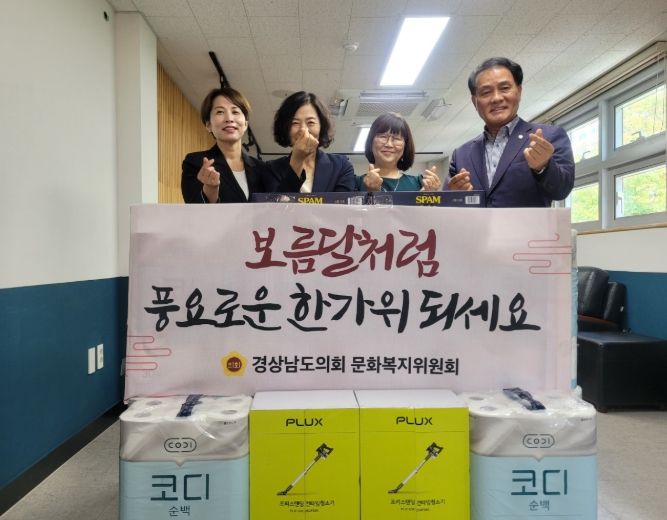 [경남도민뉴스=구인애 기자] 경상남도의회 문화복지위원회(위원장 박주언)는 24일, 민족 고유의 명절인 추석을 앞두고 김해 장유1동 주민센터를 방문해 관내 지역아동센터 2곳에 위문품을 전달하고 시설운영 현황과 애로사항을 청취했다.
