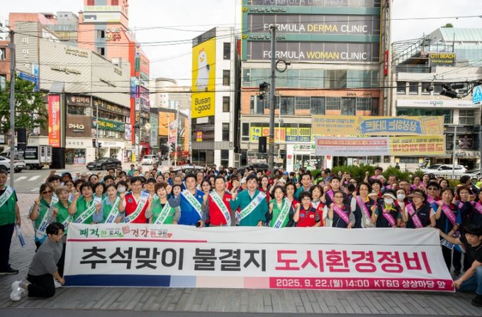[경남도민뉴스=신석주 기자] 부산진구는 지난 22일 서면1번가 일원에서 공무원, 새마을회·바르게살기협의회·한국자유총연맹 유관단체와 주민 등 약 150명이 참여한 가운데 추석맞이 도시환경정비 행사를 가졌다고 밝혔다.