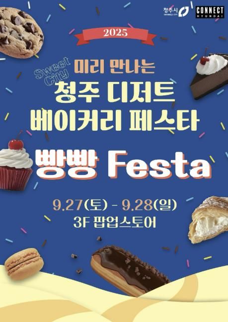 [경남도민뉴스=박만수 기자] ‘2025 빵빵 페스타’(부제 미리 만나는 2025 청주 디저트·베이커리 페스타)가 오는 27일부터 28일까지 이틀간 커넥트현대 청주 3층 팝업 스토어에서 개최된다.
