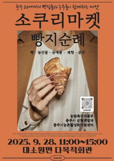 [경남도민뉴스=박만수 기자] 충주시농촌활성화지원센터는 오는 9월 28일 오전 11시부터 오후 3시까지 대소원면 다목적회관 광장에서 두 번째 ‘소쿠리마켓 빵지순례’를 개최한다고 밝혔다.