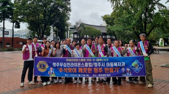 아동복지과는 중앙공원 및 성안길 일대에서 ‘깨끗한 청주, 아이들의 행복한 미래’라는 취지 아래 무심천 라이온스클럽(회장 신동욱)과 함께 추석맞이 대청소를 했다.
