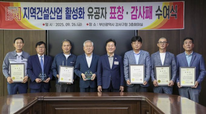[경남도민뉴스=신석주 기자] 부산 강서구는 9월 26일, 강서구청 3층 구청장실에서 '지역건설산업 활성화 유공자 표창장 및 감사패 수여식'을 개최했다.