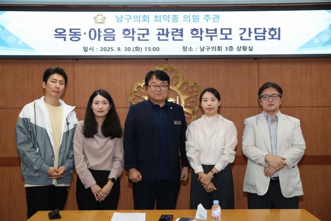 [경남도민뉴스=최재경 기자] 울산 남구의회 최덕종 의원(더불어민주당·신정4동·옥동)은 30일 3층 의회상황실에서 남구 옥동지역 중학교 배정 민원과 관련해 학부모 간담회를 개최했다.