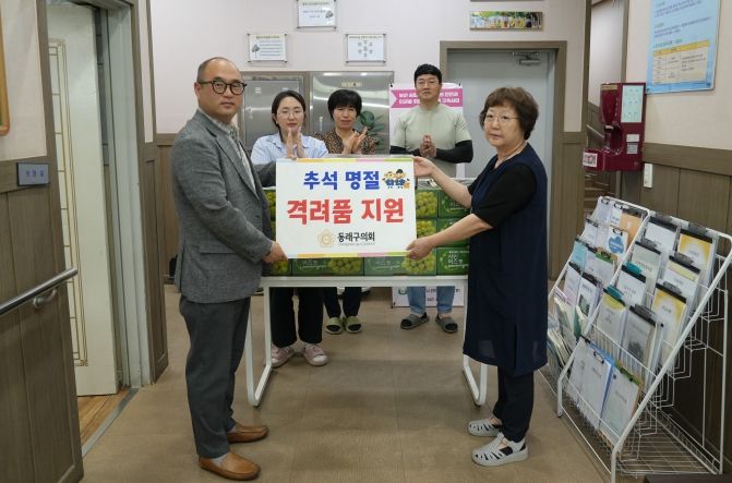 [경남도민뉴스=신석주 기자] 동래구의회는 추석 연휴를 앞둔 2일 지역 복지시설 5곳을 찾아 격려 물품을 전달하며 온정을 나눴다고 밝혔다.