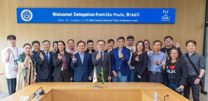 [경남도민뉴스=구인애 기자] 경상국립대학교는 브라질 상파울루시 대표단이 10월 13일 오전 경상국립대학교를 내방하여 권진회 총장을 예방하고 우주항공, 문화콘텐츠, 미디어 분야의 협력 방안을 논의했다고 밝혔다.