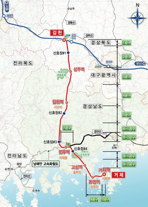 6-2공구, 8-1공구 구간인 진주시, 고성군을 시작으로 내년부터 순차적으로 건설사 선정과 착공이 이뤄질 전망이다.