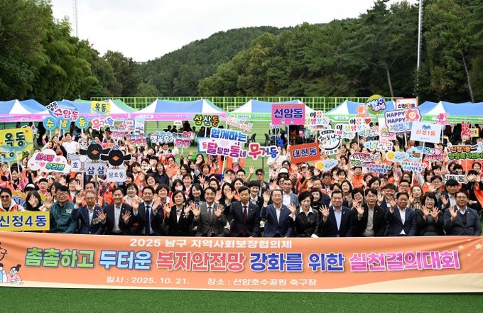 [경남도민뉴스=최재경 기자] 울산 남구는 21일 선암호수공원에서 ‘2025년 남구 지역사회보장협의체 실천결의대회’를 열고 복지 사각지대 없는 촘촘한 지역복지 실현을 위한 새로운 결의를 다졌다.