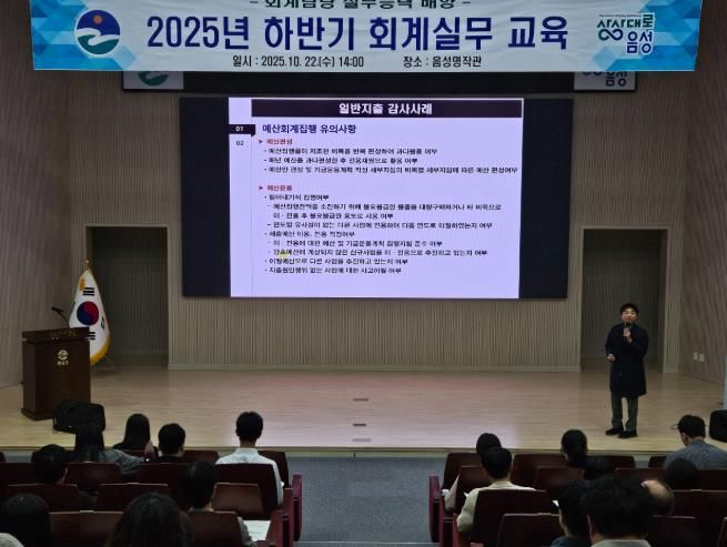 [경남도민뉴스=박만수 기자] 음성군은 22일 음성명작관에서 회계 담당 군 공직자 130여 명을 대상으로 ‘2025년 하반기 회계실무 교육’을 실시했다.