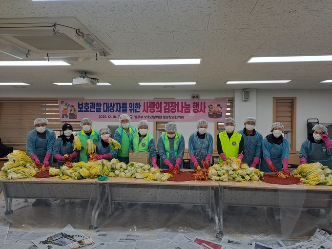 [경남도민뉴스=나희준 기자] 법무부 밀양·창녕보호관찰소협의회(회장 김동호)는 ‘25. 12. 18.(목) 보호관찰위원 20여명과 밀양준법지원센터(소장 황철규) 직원이 참석한 가운데 보호관찰 대상자에게 사랑의 김장김치 나누기 행사를 가졌다.