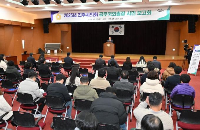 [경남도민뉴스=권중환 기자] 진주시의회는 22일 시민과 시 관계부서 공무원, 출연·유관기관 관계자 등이 참석한 가운데 ‘2025년 진주시의회 공무국외출장 시민보고회’를 시청 시민홀에서 열고, 해외 연수 성과의 정책 적용 가능성을 시민과 함께 살폈다.