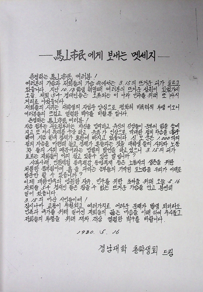 김일수 경상남도기록원장은 “이번 기획수집으로 경남 민주화·전쟁사·시민운동·환경 분야를 아우르는 민간 기록의 큰 골격을 마련했다”라며, “앞으로도 도민과 함께 만드는 경남의 기억, 후대에 남길 공공자산으로서 기록보존과 활용에 최선을 다하겠다”라고 말했다.