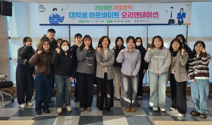 [경남도민뉴스=최재경 기자] 울산 남구는 겨울방학 대학생 아르바이트생 15명을 선발해 오리엔테이션을 진행하고 2일부터 본격 근무에 들어갔다고 밝혔다.