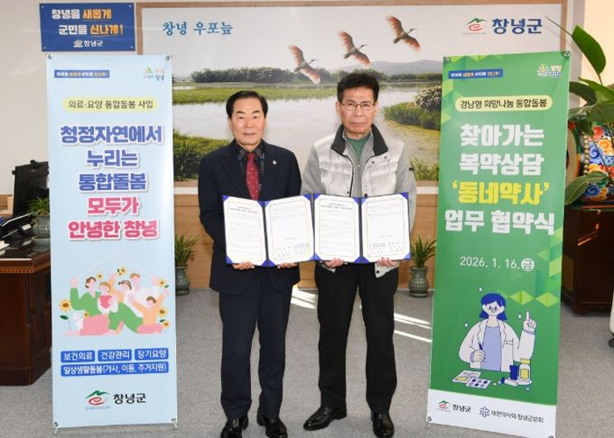 [경남도민뉴스=김병현 기자] 창녕군은 16일 지역사회 통합돌봄 강화를 위해 대한약사회 창녕군분회와 찾아가는 복약상담 ‘동네약사’ 사업 추진을 위한 업무협약을 체결했다.