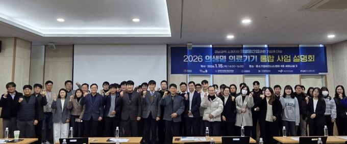 [경남도민뉴스=최미정 기자] 김해의생명·산업진흥원은 지난 15일, 김해중소기업비즈니스센터에서 지역 내 의료기기·헬스케어 기업의 성장을 돕기 위한 '2026년 의생명·의료기기 통합 사업설명회'가 성황리에 마무리됐다고 밝혔다.