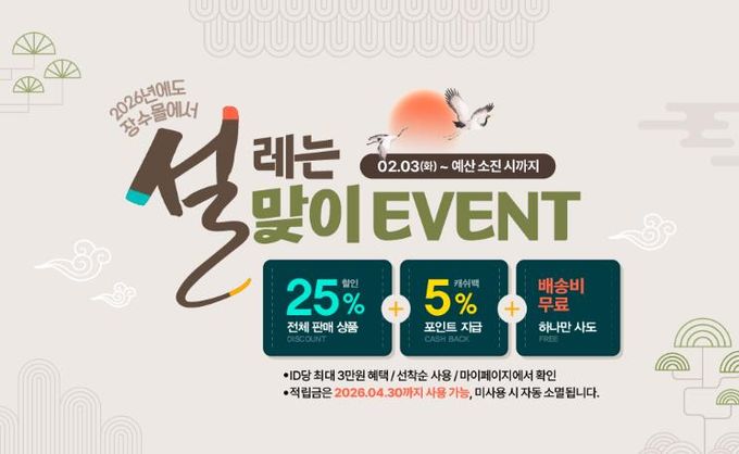 최훈식 군수는 “대명절 설을 맞아 가족과 함께하는 따뜻한 시간에 장수몰이 함께할 수 있도록 이번 이벤트를 준비했다”며 “앞으로도 장수몰 회원과 입점 농가 모두에게 실질적인 도움이 되는 정책을 적극 추진하겠다”고 밝혔다.