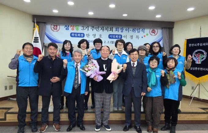 [경남도민뉴스=최미정 기자] 양산시 삼성동 주민자치회는 지난 2일 행정복지센터 3층 대회의실에서 주민자치회장 이·취임식을 개최했다.