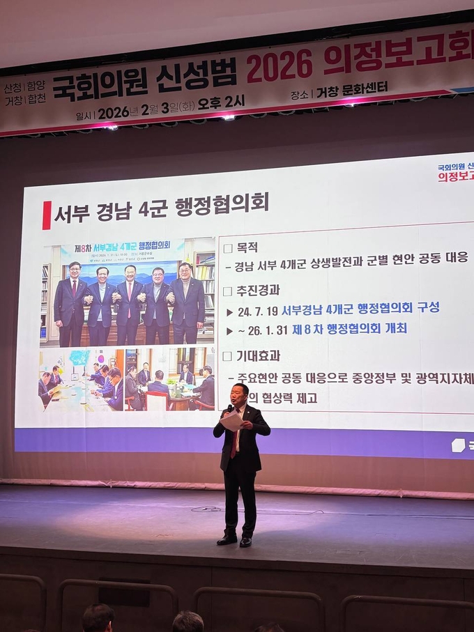 이날 보고회에서 신 의원은 경남 서부 4 개 군의 공동 발전을 위한 협력 체계 구축 성과를 강조했다 .