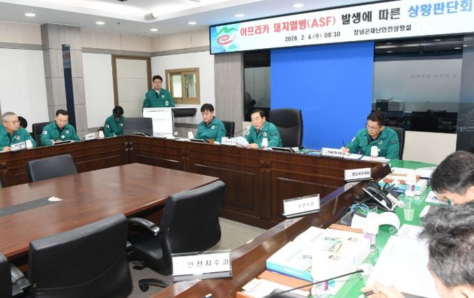 [경남도민뉴스=김병현 기자] 창녕군은 4일 대합면 소재 양돈농가에서 아프리카돼지열병(ASF)이 확인됨에 따라, 2월 4일 오전 군수 주재로 상황판단회의를 개최하고 초기 대응 상황 점검 및 추가 확산 차단을 위한 대응 방안을 집중 논의했다.