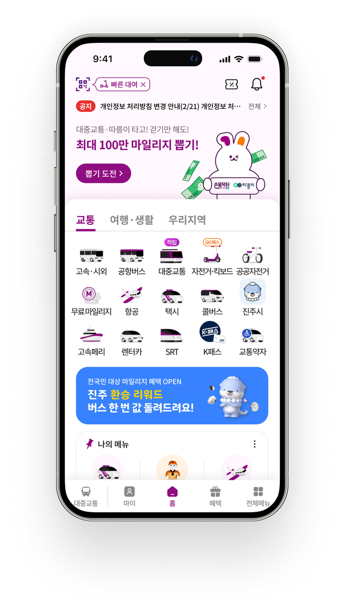 이번 설 연휴에 진주를 방문할 계획이 있다면 ‘티머니GO’를 통해 광역 교통수단을 이용하고, 진주시 내부 교통수단으로 환승 시 ‘진주형마스’의 환승할인 혜택을 누릴 수 있다.