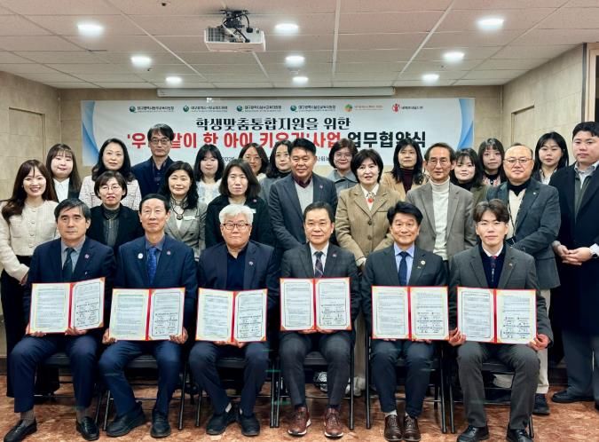 [경남도민뉴스=백상현 기자] 대구 4개 교육지원청(동부·서부·남부·달성)은 2월 9일 오전 10시, 대구광역시사회복지관협회, 세이브더칠드런 동부지역본부와 함께 학생맞춤통합지원을 위한‘우리 같이 한 아이 키우기’ 사업 추진을 위한 업무협약을 체결한다.