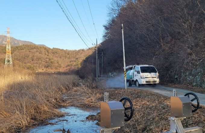 군은 현재 수시로 차량 소독을 할 수 있는 거점 소독시설 1곳을 24시간 운영하고, 군 차량방제차 1대와 축협 공동방제단 방역 차량 4대를 동원해 특별방역 추진 중이다.