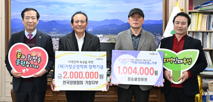 또한, 한국양봉협회 거창지부(지부장 신우원)는 2020년부터 거창군장학회와 아림1004운동에 매년 번갈아 기탁금을 전달했고, 올해는 정승골양봉원(대표 박성자)에서 아림1004운동에 100만 4천 원을, 한국양봉협회 거창군지부에서 장학금 200만 원을 기부하며 “지역 내 어려운 이웃과 학생들에게 도움이 되길 바란다”고 전했다.