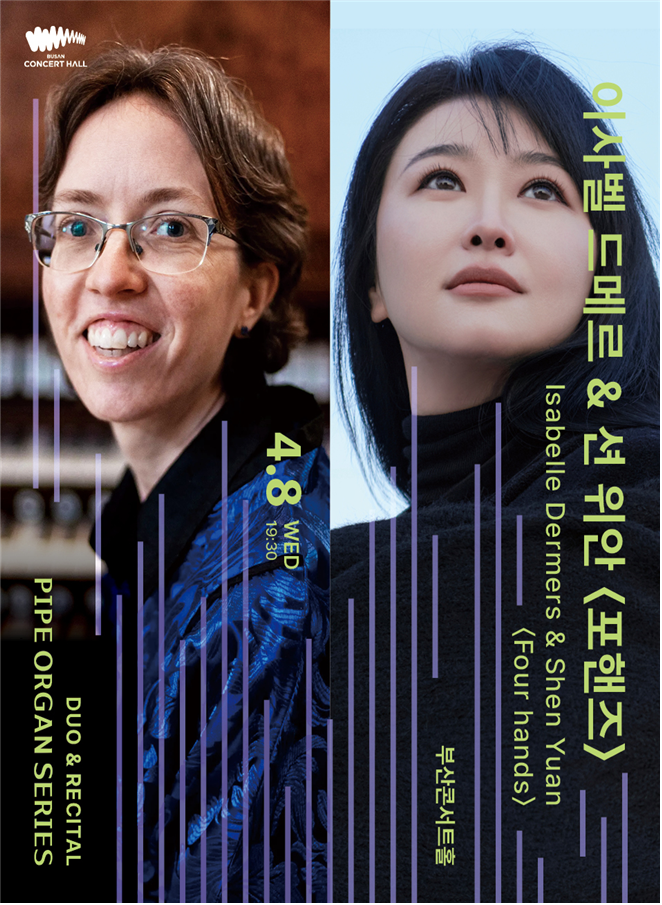첫 공연은 4월 8일 저녁 7시 30분 오르가니스트 ‘이사벨 드메르·션 위안’의 포핸즈 무대로, 두 연주자가 한 대의 오르간을 함께 연주하는 특별 형식의 공연이다.