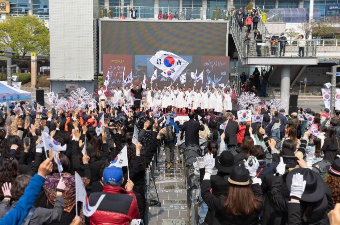 이어 독립선언서 낭독과 “대한독립만세” 삼창이 울려퍼지며, 1919년 당시의 뜨거운 함성을 생생하게 재현했다.