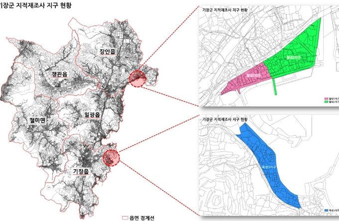 죽성 및 월내 일원 지적재조사사업은 단계별로 추진되고 있다. 죽성1지구는 사업이 완료됐고, 죽성2지구는 지적재조사를 마무리하고 면적 증감이 발생한 필지에 대해 조정금 부과 및 지급 절차를 진행 중이다.