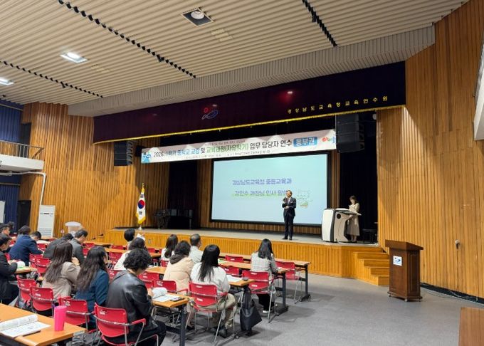 [경남도민뉴스=구인애 기자] 경상남도교육청이 7일과 8일 양일간 권역별(동부권 교육연수원, 서부권 미래교육원)로 ‘2026학년도 1학기 중학교 교감 및 교육과정 업무 담당자 연수’를 연다.