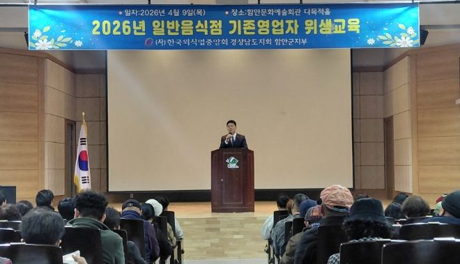 [경남도민뉴스=권중환 기자] 함안군은 지난 9일부터 10일까지 이틀간 함안문화예술회관과 칠원읍사무소에서 관내 일반음식점 영업자 300여 명을 대상으로 ‘2026년도 기존 영업자 식품 위생교육’을 실시했다고 밝혔다.