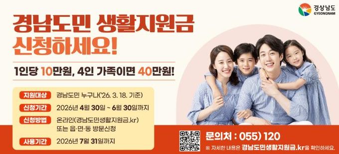 사천시 관계자는 “이번 경남도민 생활지원금이 시민들의 가계 부담을 덜고 지역경제 활성화에 실질적인 도움이 되기를 기대한다”며