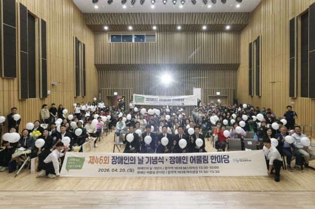[경남도민뉴스=김동규 기자] 가평군은 20일 가평군장애인복지관 주관으로 ‘제46회 장애인의 날 기념식 및 화합 행사’를 개최했다. 음악역1939에서 열린 이번 행사에는 장애인과 시설·단체 관계자, 지역 주민 등 400여 명이 참석해 의미 있는 소통의 시간을 가졌다.
