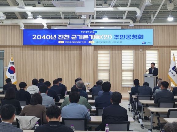 [경남도민뉴스=박만수 기자] 충북 진천군은 지속가능한 미래 발전 방향 모색과 주민의 목소리 청취를 위해 진천읍 복합커뮤니티센터에서 2040년 진천 군 기본계획(안) 공청회를 개최했다고 22일 밝혔다.