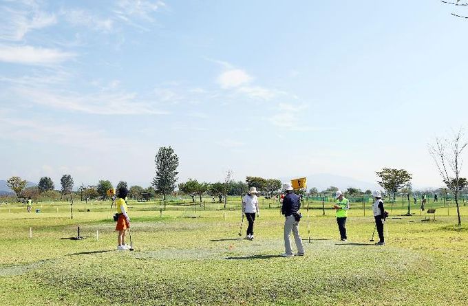 창원시 대산면파크골프장은 일 평균 1,600여 명이 찾는 전국 최대 규모의 파크골프장이다.