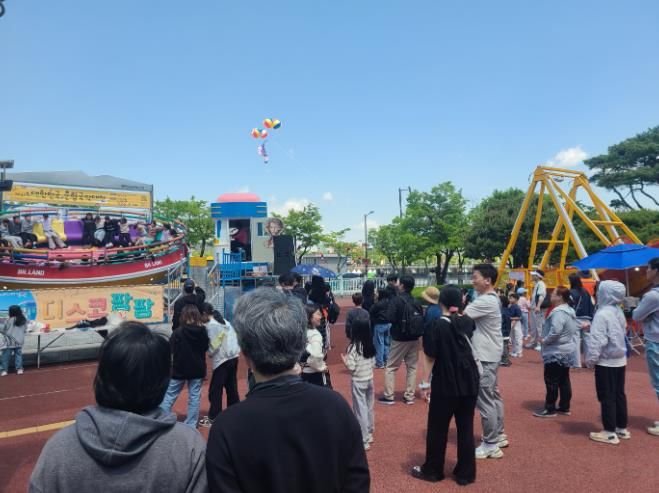 요천 수변공원에는 40m 규모의 초대형 메가 에어바운스를 비롯한 총 22개의 체험 부스가 설치되어 어린이 방문객들에게 잊지 못할 즐거움을 선사한다.