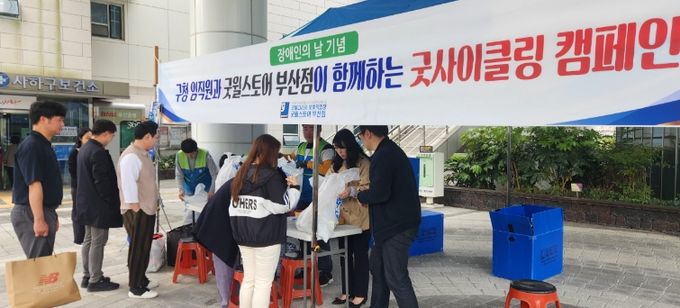 [경남도민뉴스=김채연 기자] 부산 사하구는 제46회 장애인의 날(4월 20일)을 맞아 지난 4월 23일 사하구청 본청 및 제2청사에서 중증장애인 직업재활시설 ‘굿윌코리아 보호작업장’(시설장 김성태)과 함께 '굿사이클링' 기부 물품 나눔 행사를 개최했다.