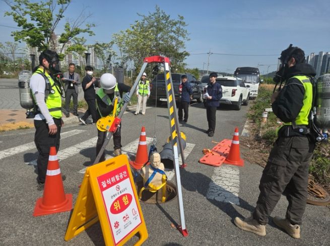 이날 현장에서는 대한산업보건협회 주관으로 밀폐공간 작업자 재해 예방을 위한 긴급구조 실기 훈련도 진행돼 현장 대응 역량을 높였다.