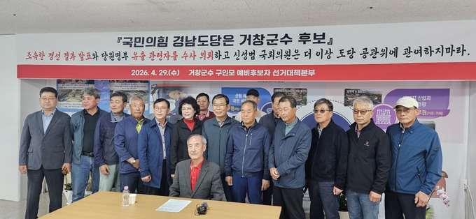 [경남도민뉴스=백형찬 기자] 국민의힘 거창군수 예비후보 구인모 선거대책본부가 29일 기자회견을 열고 경남도당 공천관리위원회와 신성범 국회의원을 향해 거창군수 공천 경선 과정의 혼선과 책임을 강하게 따졌다. 구인모 선대본은 “거창의 정치적 자존심을 회복하고 공정한 선거문화를 바로잡겠다”며 재경선 결과의 즉각 발표와 당원명부 유출 관련자에 대한 수사의뢰, 신성범 의원의 경선 불개입을 요구했다.