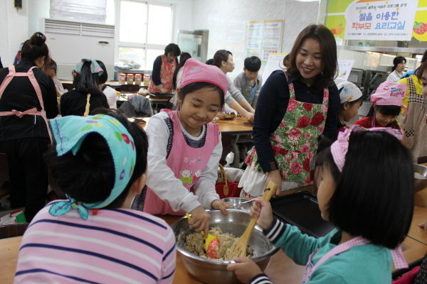 이번 행사는 쌀 요리에 관심이 많은 학부모들로부터 큰 호응을 얻어 3:1의 경쟁을 뚫고 당첨된 60여명의 어머니가 참여해 자녀들과 함께 하는 시간을 가졌다.