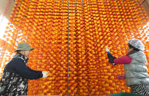 늦가을 분위기가 완연한 3일 지리산 아래 산청군 단성면 금만마을 백한흠(64세)씨 곶감 건조장에서 곶감 건조작업이 한창이다.