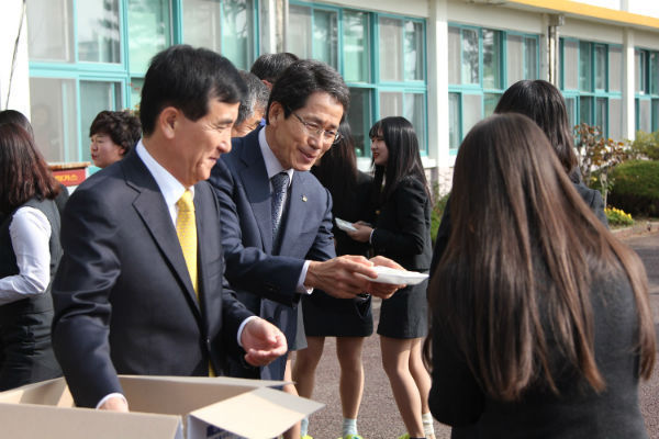 함양군 농촌지도자회(회장 김석곤) 주관으로 마련된 이번 행사는 임창호 군수를 비롯해 농촌지도자 임원 10명이 학교로 찾아가 오는 11월 11일이 농업인의 날이라는 사실을 학생들에게 널리 알리고 생명산업인 농업의 소중함과 우리 쌀의 우수성을 일깨우고자 마련됐다.