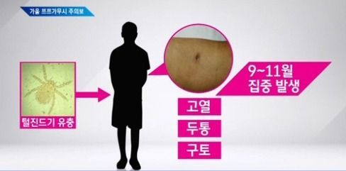 실제로 털진드기 유충이 옮기는 쯔쯔가무시증은 유충이 번식하는 9~11월에 집중적으로 발생하며, 쥐 등 설치류의 배설물이 호흡기를 통해서 감염될 수 있는 '신증후군출혈열’과 피부 상처가 야생동물·가축의 배설물에 오염된 곳에 접촉으로 감염되는 ‘렙토스피라증'도 주로 9~11월에 60~80% 발생한다.
