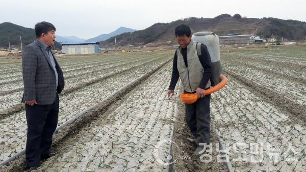 (경남도민뉴스) = 함양군이 양파 생육재생기를 맞아 1차 추비시용 및 배수로관리, 양파묘 유인작업 등 현장지도를 강화한다고 19일 밝혔다.