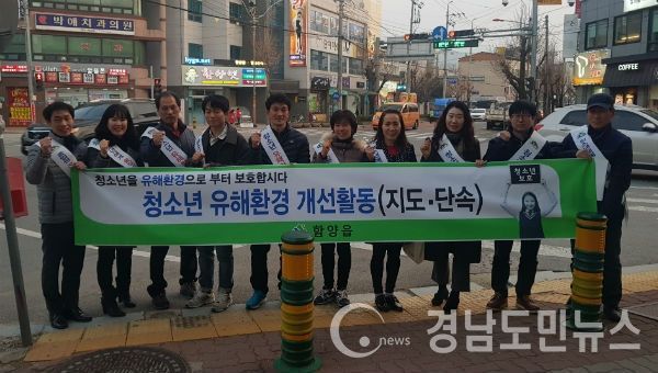이번 청소년 유해환경 개선 계도활동 캠페인은 개학기 관내 학교주변과 청소년 유해환경을 개선시키고자 지난 25일부터 3월 19일까지 4주간 유해업소를 방문하여 청소년 불법출입·고용, 술·담배 판매 등 계도활동을 실시하여 함양읍 청소년 탈선 예방 및 유해업소 업주의 청소년 보호의식을 확산시키고 깨끗한 사회분위기 개선에 앞장서고 있다.