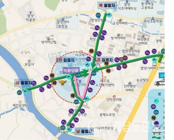 이에 1일 오전 9시30분부터 12시까지 2시간 30분간 △시외터미널→동문사거리 △백연회전교차로→동문사거리 △1교두루침교→동문사거리 △함양중 사거리→동문사거리 등 4곳의 도로에 대해 부분 및 전면교통통제를 실시한다.