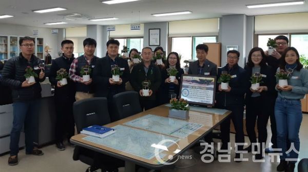 군에 따르면 농축산과 직원 20여 명은 높은 윤리의식을 함양하고 청렴을 생활화하기 위해 화초 화분을 한 개씩 구입하여 다짐판에 글귀와 이름을 새긴 후 책상위에 놓고 출근과 동시에 청렴을 다짐하고 있다.